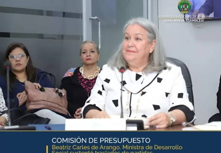 La ministra de Desarrollo Social, Beatriz Carles solicitó en la Comisión de Presupuesto de la Asamblea Nacional al justificarun traslado de partidas por 4.05 millones de dólares para cubrir pagos pendientes de programas como Ángel Guardián, 120 a los 65, Red de Oportunidades y Senapan.