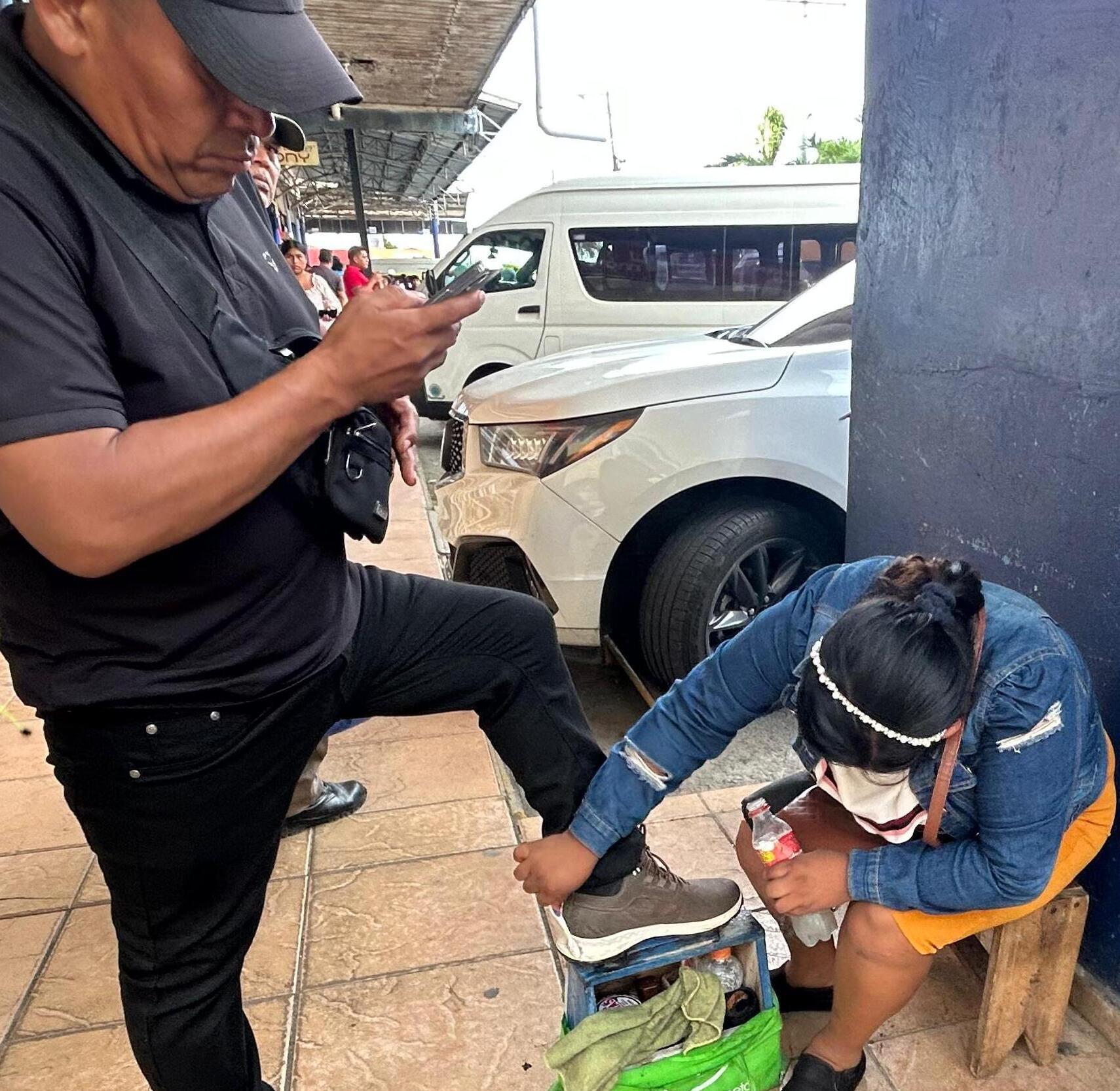 Esta joven madre se hizo viral en redes sociales luego de que se difundiera un video en el que aparece limpiando zapatos en la terminal de Changuinola.