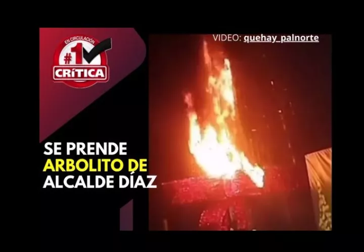 Arde árbol de Navidad en Alcalde Díaz
