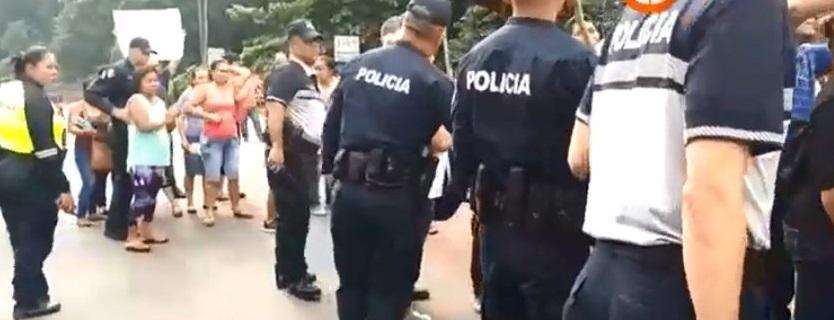 Unidades policiales llega a mediar con los miembros de la comunidad para que despejen la vía, ya se registra un tranque vehicular.