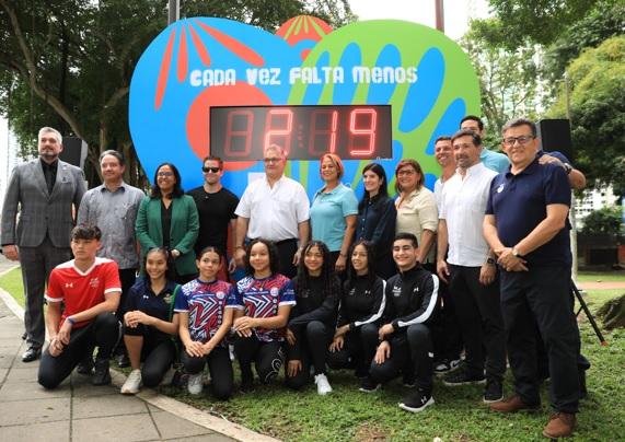 En un acto en el Parque Urracá, el ministro de la Presidencia, Juan Carlos Orillac, junto a la presidenta del Comité Olímpico, Damaris Young, el director de Pandeportes, Miguel Ordóñez, y el alcalde Mayer Mizrachi, desvelaron el reloj que marca la cuenta regresiva para este evento histórico.