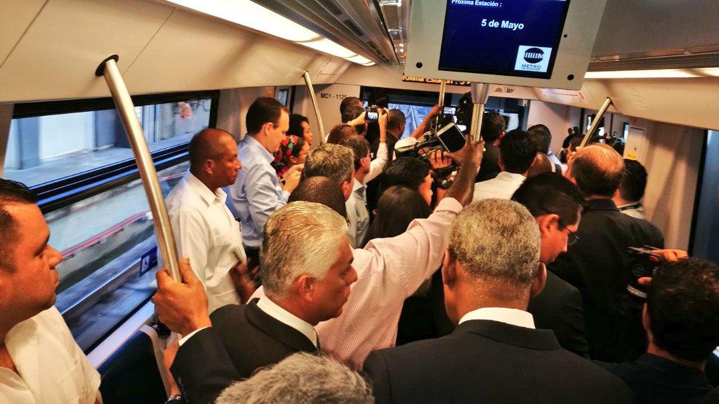 La puesta en marcha del primer tren de 5 vagones que se incorpora a la línea 1 del metro tiene una capacidad de hasta mil usuarios.