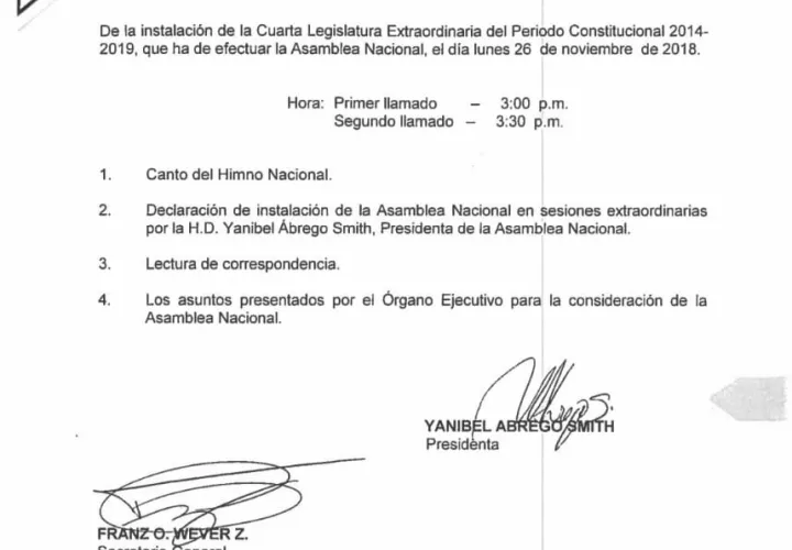 Otros temas para revisar y aprobar son: presupuesto general del Estado 2019, y nombramientos en la Junta Directiva de la Caja del Seguro Social (CSS) y el Banco Nacional.