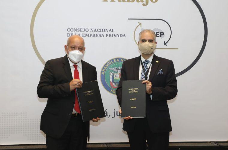 La Asamblea Nacional y el Consejo Nacional de la Empresa Privada (Conep) firmaron ayer un convenio de colaboración por dos años para la instalación de mesas técnicas para la revisión respectiva de proyectos de ley que tienen que ver con la reactivación económica de Panamá.