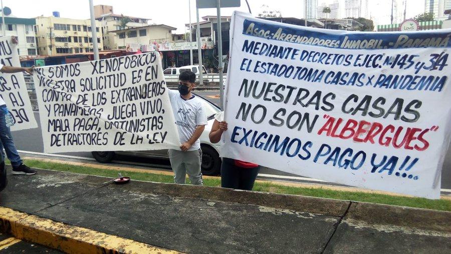 "Nuestras casas no son albergues por lo que exigimos a inquilinos nacionales y extranjeros que paguen lo adeudado", manifestó uno de los manifestantes.