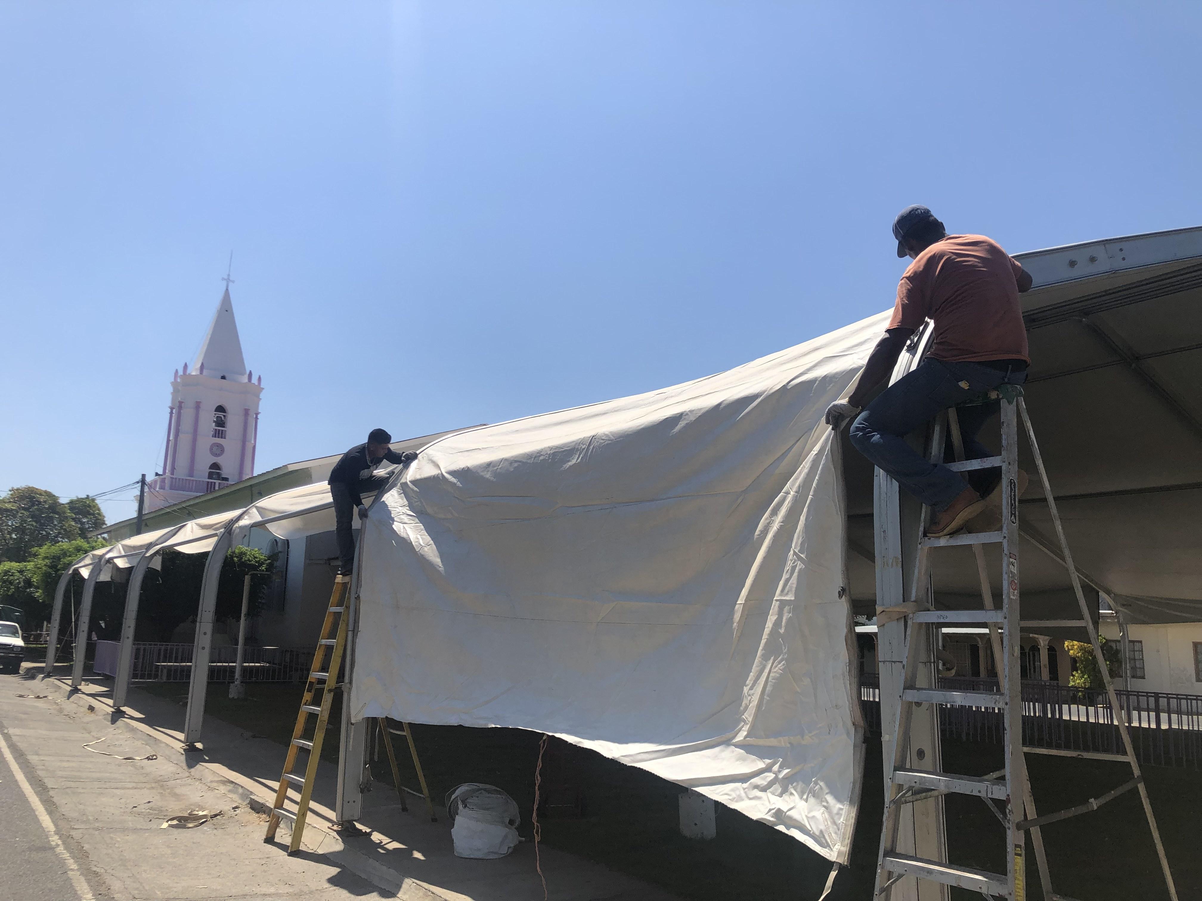 El padre Reginio Aguilar, cura párroco de Atalaya, adelantó que ya se han instalado las toldas gigantes en las afueras de la iglesia porque las misas de las nueve noches se realizarán en la parte exterior del templo.