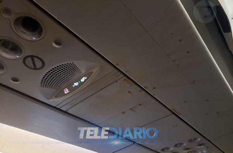 Telediario difundió fotos que muestran el baño destruido, daños en el techo del avión y bolsas de basura que terminaron en el suelo.