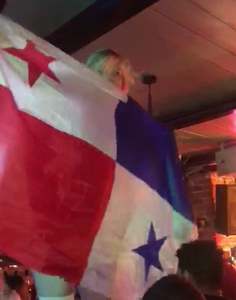 Pillen cómo utilizan la bandera de Panamá. Todo indica que es un bar en Rusia.