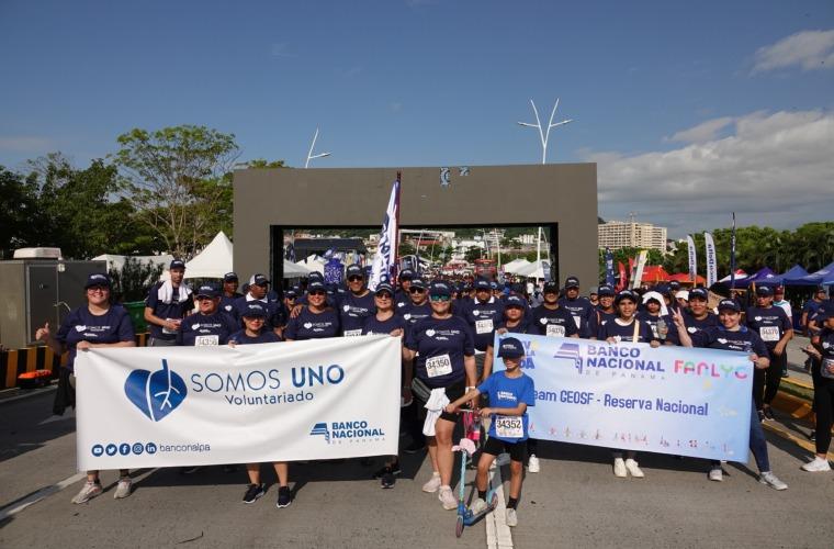 Colaboradores, familiares y amigos de Banco Nacional de Panamá, liderados por el grupo de voluntarios #SomosUno, llevaron a que la primera institución bancaria del país alcanzara el primer lugar nacional en la carrera Relevo por la Vida, organizada por la Fundación Amigos del Niño con Leucemia y Cáncer (FANLYC).