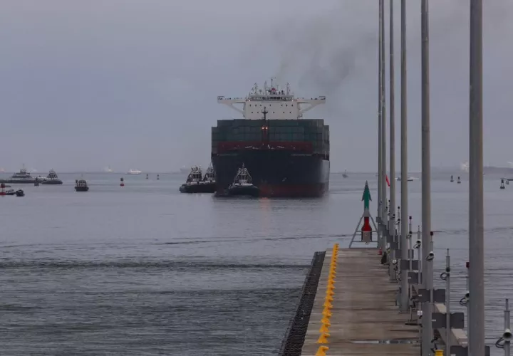 Cargado de portacontenedores, guiado por remolcadores y custodiado por embarcaciones de las fuerzas de seguridad panameñas, el buque, un neopanamax, se desplazaba lentamente por la bahía de Cristóbal
