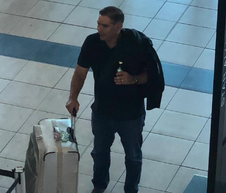 En una de las imágenes se observa que Valderrama, quien vestía un suéter negro, pantalón "jeans" azul, zapatillas de cuadros, negras con gris y un abrigo negro, caminaba en las instalaciones del aeropuerto con una maleta de color crema, listo para salir del país.