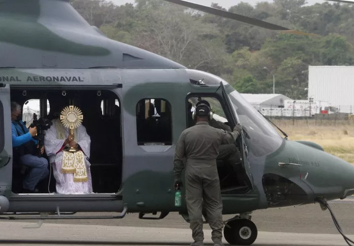 Luego de que monseñor Ulloa saliera de la Catedral junto al Santísimo Sacramento, partió desde el aeropuerto Panamá Pacifico, en Howard, Arraiján, en un helicóptero del Senan.