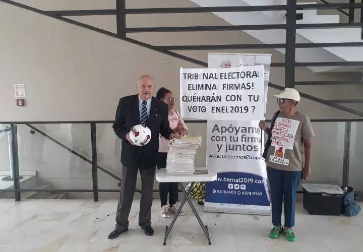 El catedrático Miguel Antonio Bernal presentó ayer ante el Tribunal Electoral 9 libros que contienen 15 mil firmas de personas que apoyan su candidatura presidencial independiente.