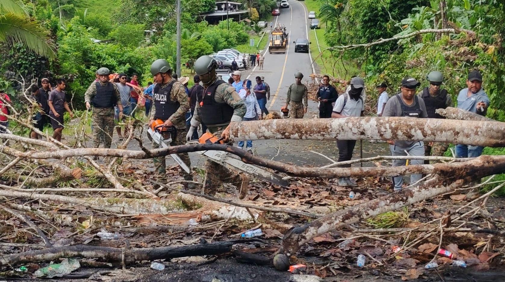 Luego de negociaciones, los miembros de la Fuerza Pública logran acuerdo para reabrir la vía de Hornito hasta Rambala, Chiriquí Grande. Los pobladores ayuda a remover las barricadas colocadas en la carretera.