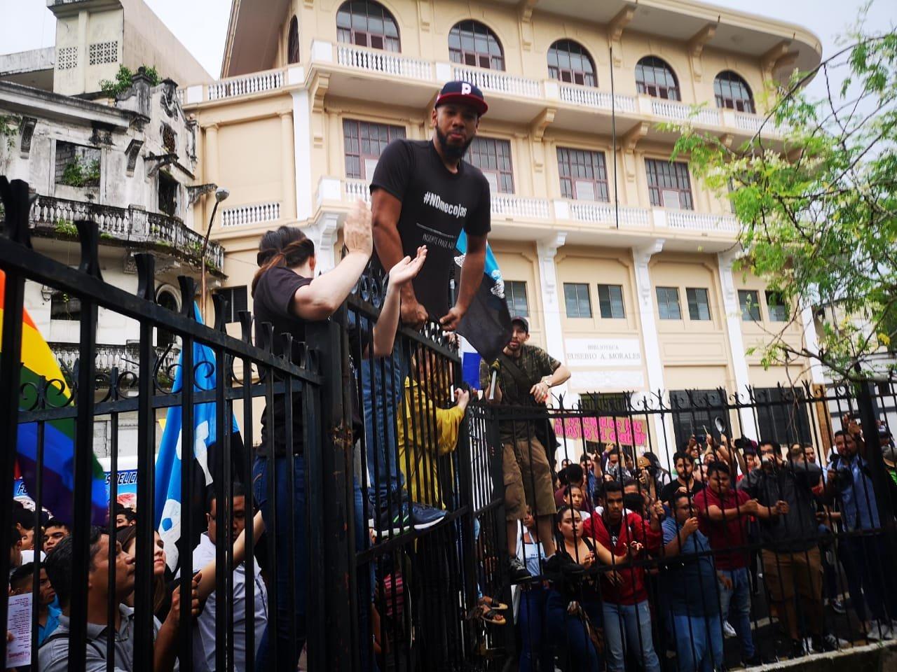 Y es que miembros de grupos estudiantiles de la Universidad de Panamá y activistas de los derechos civiles de las minorías LBGTI, llegaron a los predios del palacio Justo Arosemena para estar presentes durante el debate sobre el Presupuesto General del Estado y a manifestar su rechazo a las reformas constitucionales que ayer fueron aprobadas en tercer debate el lunes.