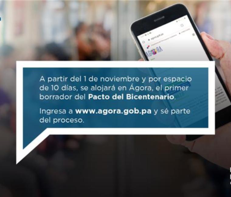 Por espacio de 10 días y a partir del 1 de noviembre, todos los ciudadanos tendrán la oportunidad de emitir su opinión sobre el primer borrador del Pacto del Bicentenario, el cual estará alojado en la plataforma Ágora.