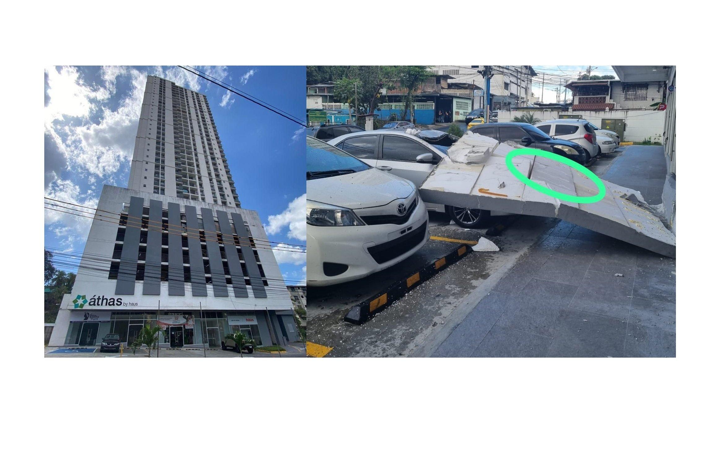 El tema de las fallas en construcciones vuelve a encender a los tuiteros, luego de que parte de fachada del PH Athas, un edificio nuevo, ubicado en la avenida La Pulida, cayó sobre un automóvil estacionado.