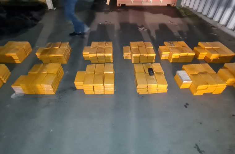 La sustancia ilícita fue hallada en bultos negros escondidos entre cajas en un contenedor, de acuerdo con vídeos difundidos por el Ministerio de Seguridad Pública.
