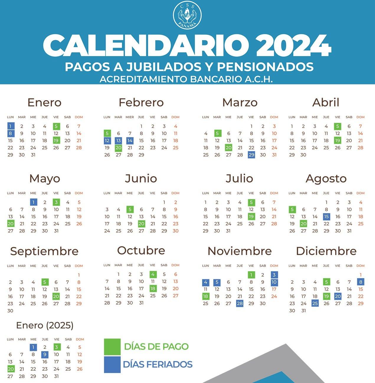 La Caja del Seguro Social (CSS) publicó el calendario de pagos a jubilados y pensionados en el 2024, los cuales iniciarán en enero con las transferencias por ACH el viernes 5 de enero.