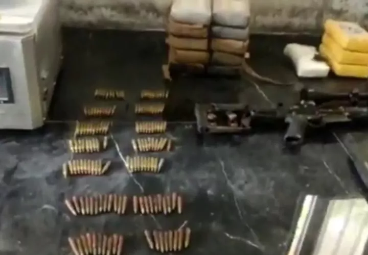 Al ser verificada el escondite se encontró la droga (27 paquetes) en varias maletas color negro, una máquina para embalar, un fusil de asalto, 144 municiones calibre 556 y un chaleco balístico.