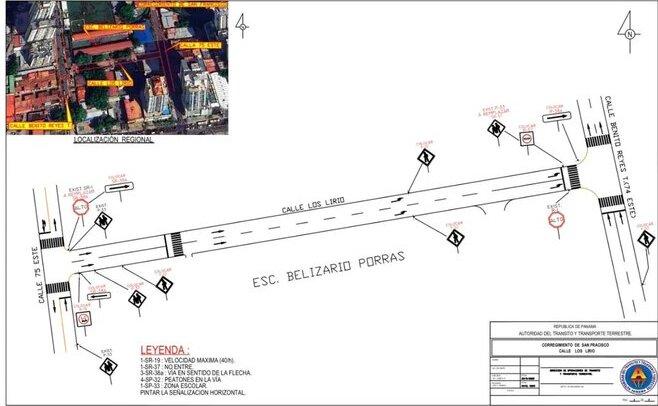 -Calle Los Lirios, a la altura del Colegio Belisario Porras: tendrá sentido único desde la calle 75 hacia la calle 74.