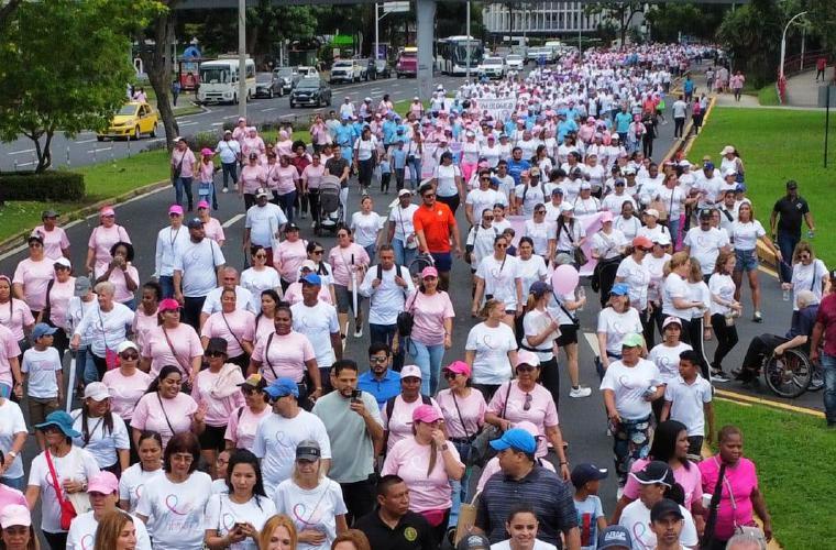 La primera dama, Maricel Cohen de Mulino, junto a su familia, encabezó ayer la gran “Caminatón” como cierre de la campaña de la Cinta Rosada y Celeste, “Con Paso Firme en la Lucha Contra el Cáncer”.