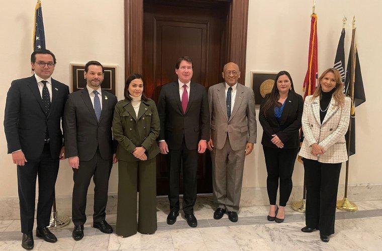 La delegación se reunió ayer con el presidente del Comité de Servicios Armados del Senado, Jack Reed para abordar el tema migratorio, para seguir trabajando por una migración segura, ordenada, regular y humanitaria.