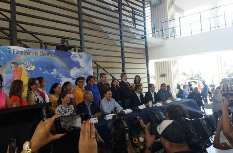 A pesar de tener enfoques y propuestas diferentes, seis de los siete candidatos a la presidencia firmaron ayer el V Pacto Mujeres, Desarrollo e Igualdad 2019-2024, en la sede del Tribunal Electoral.