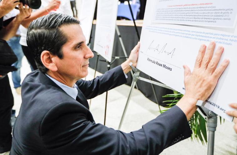 Candidatos firman reto por la transparencia