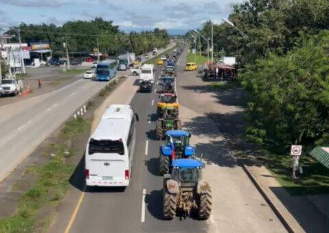 Productores y molineros de distintas partes del país llevan a cabo este viernes una caravana con tractores y otros equipos, que va desde la entrada de Atalaya hasta Santiago, en la provincia de Veraguas.