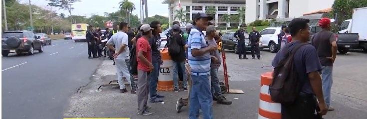 Un grupo de carretilleros protestan en la entrada del Mercado de Abastos, ubicado en Ancón, para denunciar que no los dejan trabajar.