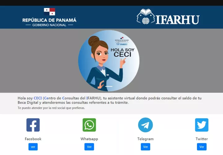 De acuerdo a la plataforma presentado por el Ifarhu, Ceci brindará información a través de las plataformas de Facebook, WhatsApp, Telegram y Twitter.