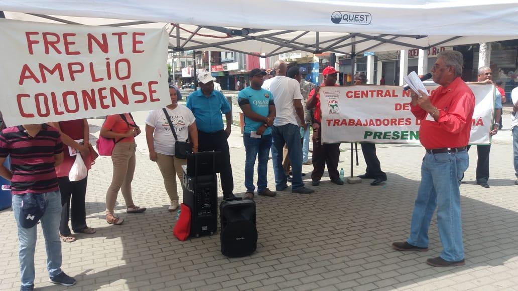 En el área se concentraron integrantes de la Central Nacional de Trabajadores de Panamá, el Frente Amplio Colonenses y dirigentes estudiantiles del Centro Regional Universitario de Colón.