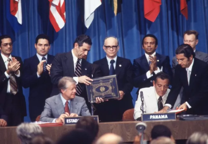 Los tratados Torrijos-Carter y otros documentos relacionados, fueron firmados en Washington DC el 7 de septiembre de 1977 por Omar Torrijos (jefe de estado de Panamá) y Jimmy Carter (presidente de los Estados Unidos de América). Con ellos, se pone fin a la presencia colonial estadounidense en el Canal de Panamá, el cual es devuelto a Panamá.