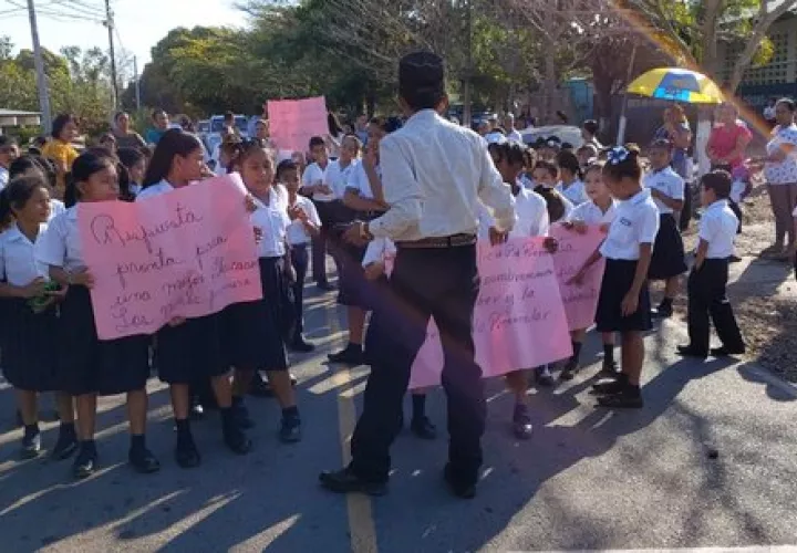 Estudiantes de la escuela Angélica P. de Riera de Cañacillas Abajo localizada en Santiago, provincia de Varaguas, protestaron esta mañana y cerraron la vía principal de la comunidad.