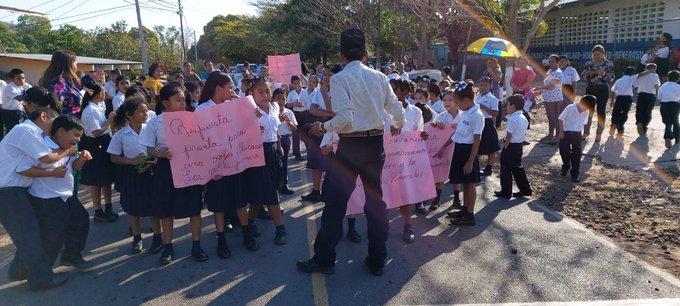 Estudiantes de la escuela Angélica P. de Riera de Cañacillas Abajo localizada en Santiago, provincia de Varaguas, protestaron esta mañana y cerraron la vía principal de la comunidad.