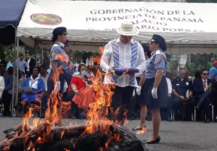 Panamá- Con la presencia de figuras nacionales, artistas, estudiantes y autoridades gubernamentales se desarrolló hoy, martes, el acto protocolar de la cremación de banderas en desuso o en mal estado en el parque Dr. Belisario Porras.