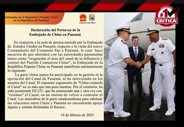 La embajada de China en Panamá reaccionó con fuerza a las recientes declaraciones de la embajada de Estados Unidos sobre la visita del almirante estadounidense Alvin Holsey, quien abordará temas de seguridad en el Canal y la supuesta influencia del Partido Comunista Chino.
