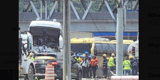 El conductor, su acompañante y un pasajero que iba en la parte delantera quedaron atrapadas dentro del bus, mientras los equipos de rescate luchaban por liberarlos. Tras ser liberados fueron llevados de emergencia para recibir atención médica.