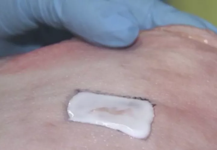 Ameer, en declaraciones para la cadena FOX en Estados Unidos, explicó que la venda se aplica en forma líquida, pero que cuando se expone a la temperatura del cuerpo, se solidifica en segundos y se convierte en un gel que se ajusta a todos los contornos de la piel.