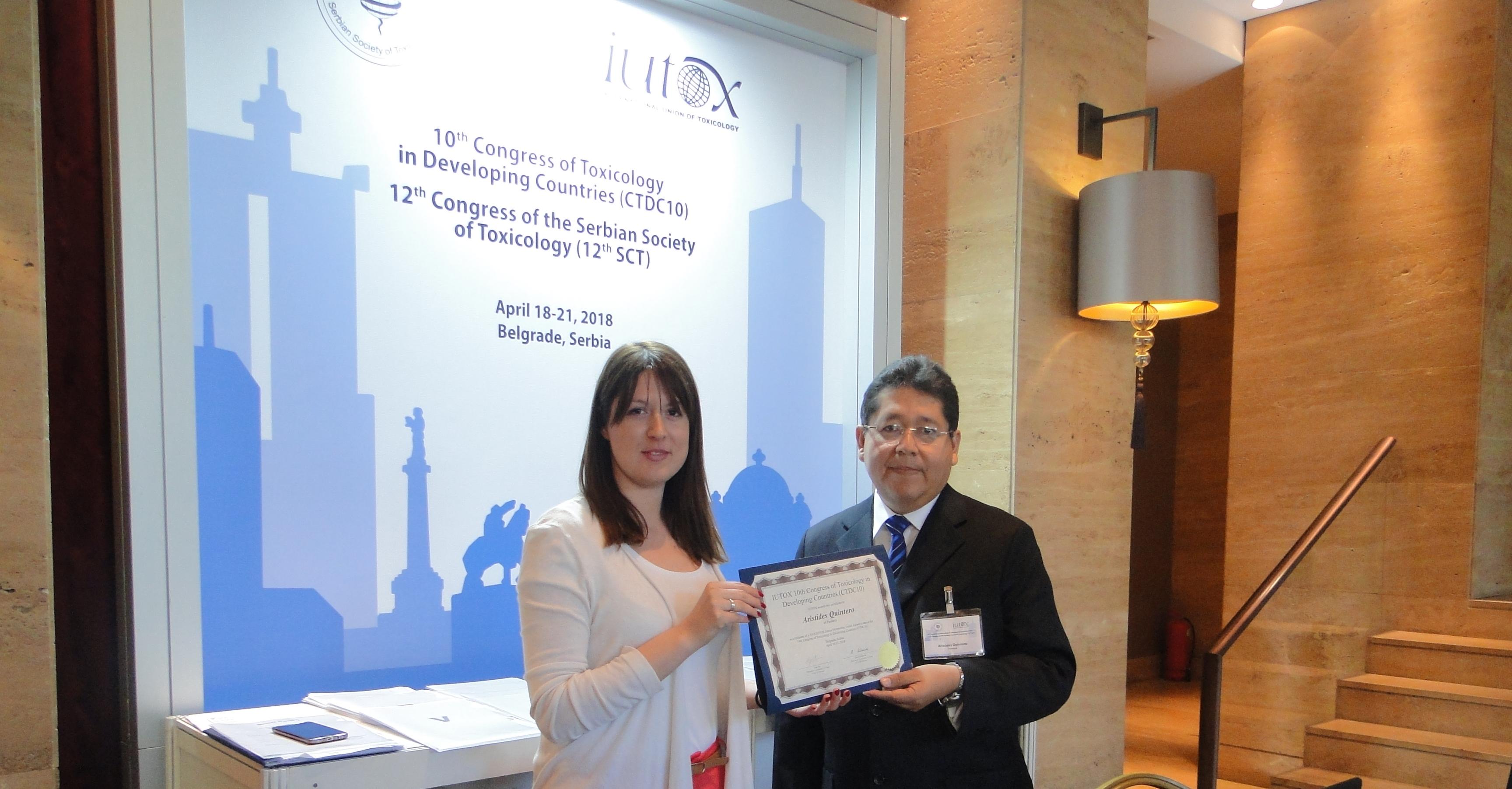 El científico panameño Arístides Quintero Rueda recibió un premio de la Unión Internacional de Toxicología (IUTOX, por sus siglas en inglés), en el marco del 10 ° Congreso de Toxicología en Países en Desarrollo, organizado poreste grup'o y la Sociedad de Toxicología de Serbia (SETOX). El evento se realizó en Belgrado, Serbia, del 18 al 21 de abril de 2018.