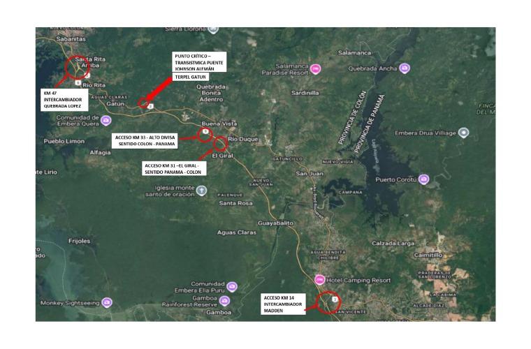 Y en dirección Colón-Panamá, deberán desviarse desde la Vía Transístmica hacia el intercambiador Quebrada López, en el kilómetro 47.