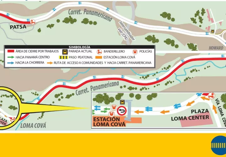 Además será necesario el cierre de un tramo de los carriles de la carretera Panamericana que dirigen hacia Panamá Centro, a la altura de Loma Cová.