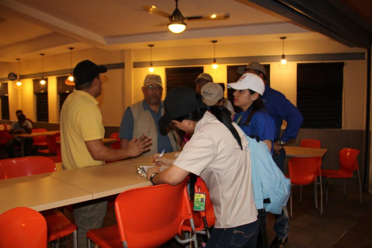 Funcionarios del Ministerio de Salud en conjunto de agentes de la Fuerza de Tarea Conjunto (FTC) durante el operativo nocturno donde verificaron 220 locales de los cuales 8 no cumplieron con lo establecido referente a la cantidad de personas permitidas en locales.