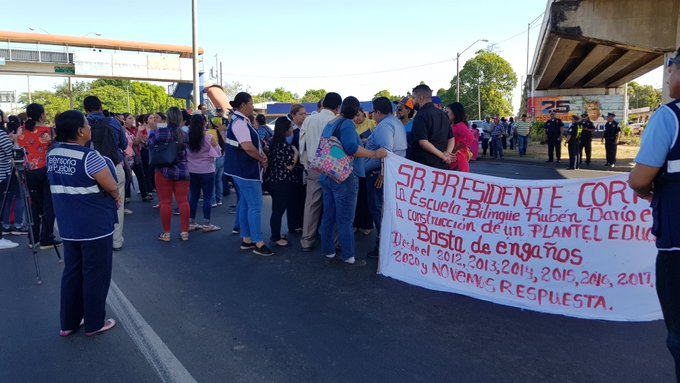 La comunidad de la escuela bilingüe "Rubén Darío" viene reclamando desde hace más de 10 años la construcción de un nuevo plantel. "Basta de engaños y exigen al Ministerio de Educación una respuesta", plasmaron en una de las pancartas.