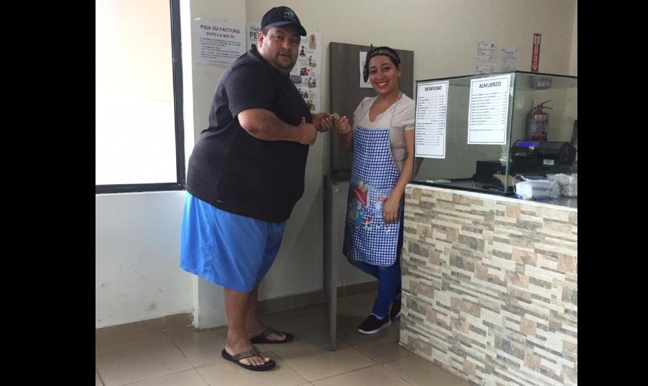 Un aplauso para esta joven, trabajadora de un local de venta de comida