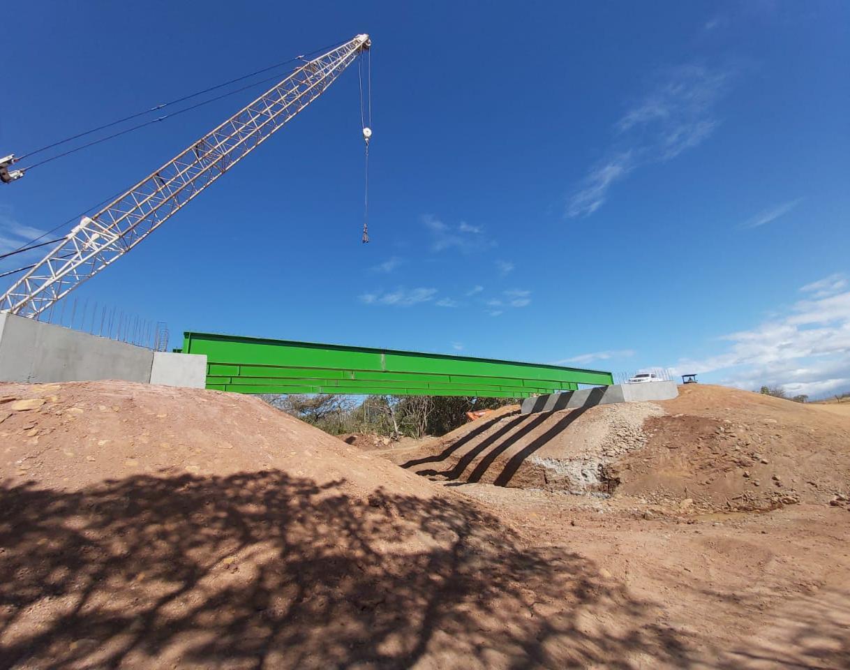 Como parte del proyecto de Diseño y Construcción para la rehabilitación del camino CPA-Calabacito y Ramal El Castillo en el distrito de Santiago, provincia de Veraguas, el Ministerio de Obras Públicas a través de la empresa Consorcio Inversiones F3 realiza la colocación de Vigas en el puente sobre la quebrada El Cercado.