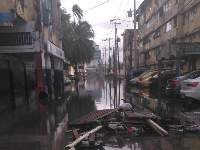 De acuerdo con el Burgomaestre, las bombas de la zona franca no están operando, pues no logran que las aguas puedan ser drenadas de las calles 13, 14 y 15 avenida Meléndez.