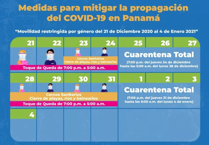 Al tiempo que en el Hospital Santo Tomás se habilita una sala de 31 camas para pacientes moderados, y este viernes se habilitó en el Figali una segunda sala de UCRE de 40 camas, con lo que se completará el 100% de la infraestructura.Para garantizar las medidas adoptadas, a partir del 23 de diciembre hasta el 4 de enero de 2021, se mantendrán operativos cercos sanitarios en La Pesa de La Chorrera, Divisa, La Villa, Chagres, Viguí, entre otros sitios, así como el cierre de playas, ríos y balnearios.