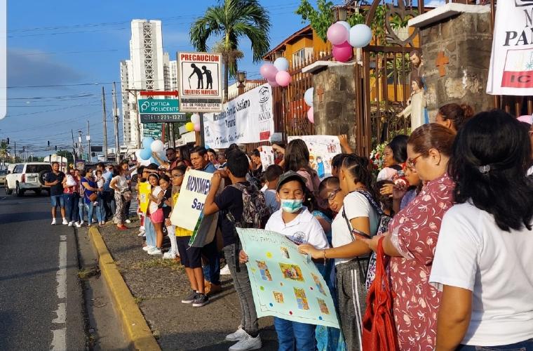 Con la consigna "Tu Familia Vale, Protégela", el Movimiento Familiar Cristiano Arquidiocesano (MFC-Panamá) llevó a cabo una Cadena Familiar frente a la Iglesia de Piedra de Parque Lefevre y Río Abajo.